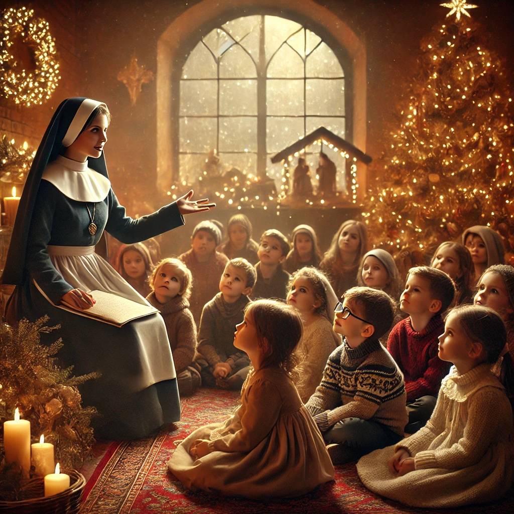 一位主日學的修女,向孩子們講述聖誕節耶穌基督的誕生,給人類帶來了幸福和新生命。修女也交待孩子們把基督帶回家,迎接聖誕的祝福。她說:「只要把基督帶回家,你的家人就會彼此相愛,永遠幸福。」